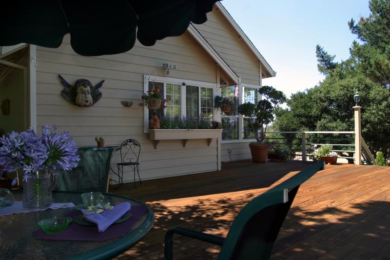 Georgeous, gated, wine country home less that 1 hour to San Francisco on 2 acres at the end of a quiet lane. Light filled rooms featuring a great room concept with high ceilings and quality finishes. The 3 bedroom home enjoys a great room with fireplace, large gourmet kitchen and abundant bonus room. A huge deck with wood and copper railings overlooks exquisitely landscaped grounds with fruit trees, redwood groves and quaint outbuildings suited for many uses.